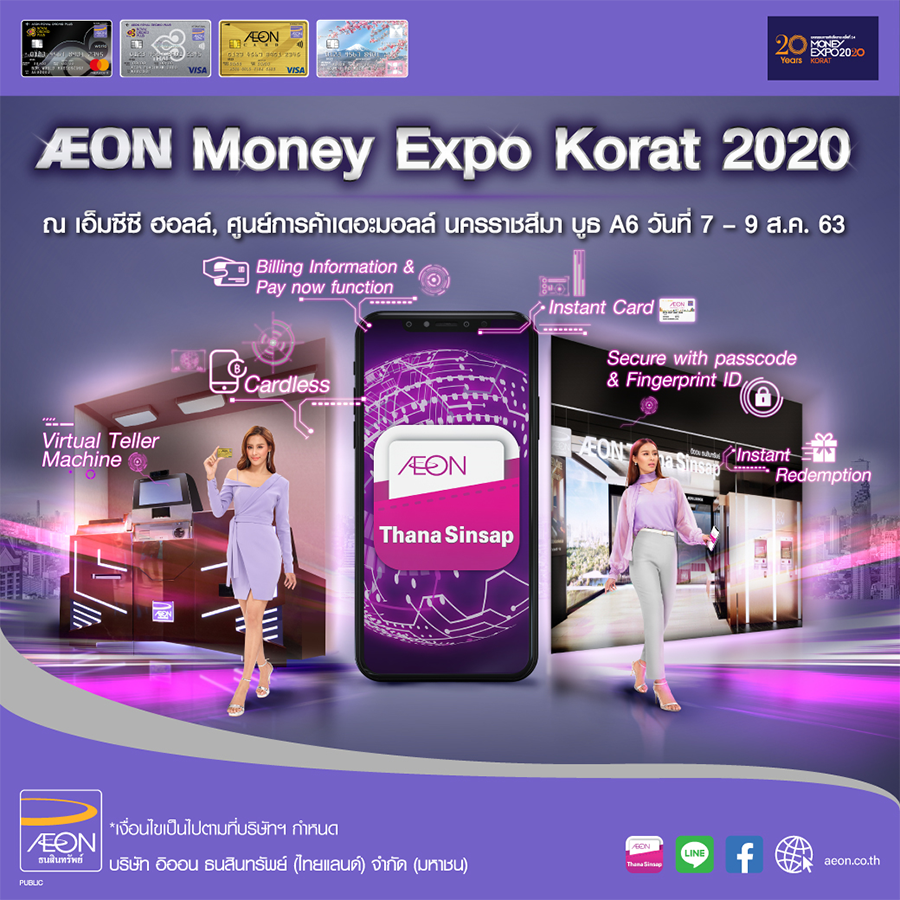 บริษัท อิออน ธนสินทรัพย์ (ไทยแลนด์) จำกัด (มหาชน) ผู้ให้บริการด้านการเงินและสินเชื่อชั้นนำ เตรียมพร้อมจัดโปรโมชั่นครั้งยิ่งใหญ่ หวังช่วยกระตุ้นตลาดการเงินหลังปลดล็อกดาวน์จากสถานการณ์ที่คลี่คลายลงของการแพร่ระบาดโรคติดเชื้อโควิด-19 ในงานมหกรรมการเงินโคราช ครั้งที่ 14 (Money Expo Korat 2020) งานนี้ไม่ควรพลาด อิออนยังยกทัพผลิตภัณฑ์และบริการใหม่ๆ มานำเสนอที่งาน พร้อมกับของสมนาคุณสุดคุ้มและสิทธิพิเศษอีกมากมายที่จะมาตอบโจทย์ความต้องการด้านการเงิน ไม่ว่าจะเป็น สินเชื่อยัวร์แคช (Your Cash) บริการเบิกถอนเงินสด ผ่อนสินค้าผ่านโปรแกรม Happy Pay และ Happy Plan รวมถึงการเปิดรับสมัครบัตรสมาชิก นอกจากนี้ยังมีโปรโมชั่นผ่อนทองดอกเบี้ยพิเศษ 0% นาน 10 เดือนอีกด้วย โดยลูกค้าอิออนยังมีสิทธิลุ้นรับรางวัลมากมายหากมีการทำธุรกรรมกับอิออนภายในงาน ไม่ว่าจะเป็น iPhone XS 64GB มูลค่า 39,900 บาท หรือสร้อยคอทองคำหนักหนึ่งบาท มูลค่า 29,000 บาท สร้อยคอทองคำหนัก 50 สตางค์ มูลค่า 14,500 บาท บัตรกำนัลบิ๊กซีมูลค่า 800 บาท และกระเป๋าเดินทาง Caggioni Trolley Bag สีกรมท่าขนาด 29 นิ้ว เป็นต้น