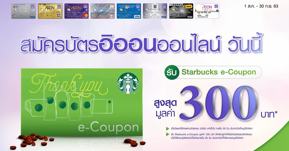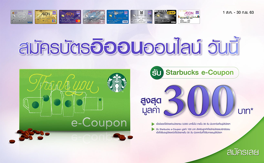 - รับ Starbucks e-Coupon มูลค่า 300 บาท สำหรับลูกค้าที่สมัครบัตรเครดิตอิออน