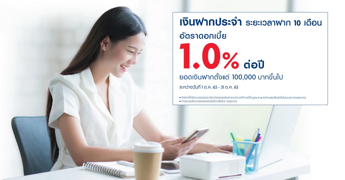 โปรโมชั่นบัญชีเงินฝากประจำ ระยะเวลาฝาก 10 เดือน ดอกเบี้ยโดนใจ 1.00% ต่อปี จาก ธ.ยูโอบี