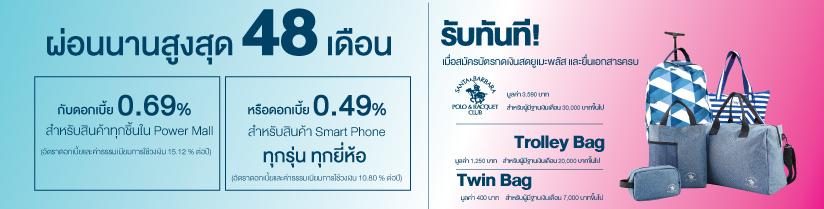 ผ่อนเครื่องใช้ไฟฟ้า 0% ผ่อนมือถือ 0% รับฟรีกระเป๋า twin bag รับฟรีกระเป๋า trolley bag