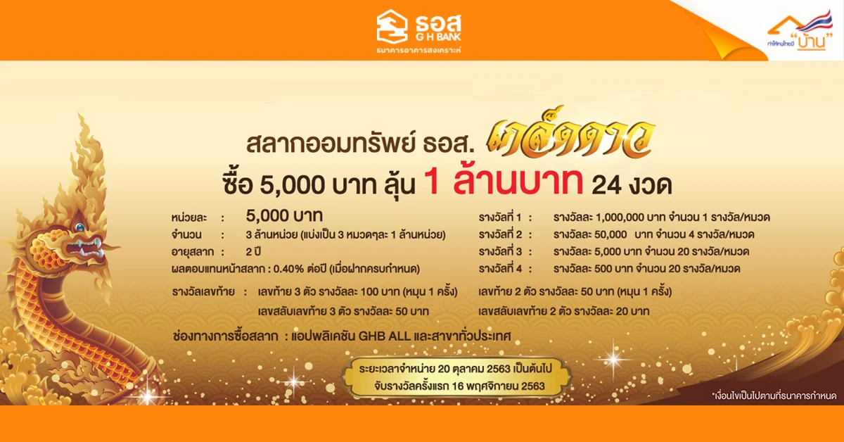 ช้าหมด อดแน่!! สลากออมทรัพย์ ธอส. ชุดเกล็ดดาว ออม 5 พัน ลุ้นรับ 1 ล้าน ขายวันนี้วันแรกปี*อาคารสงเคราะห์
