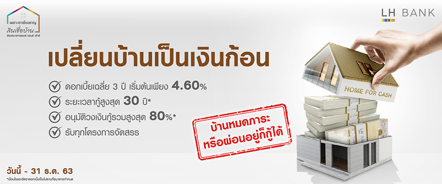 บ้านแลกเงิน เปลี่ยนบ้านเป็นเงิน สินเชื่อบ้านดอกเบี้ยต่ำ happy home for cash