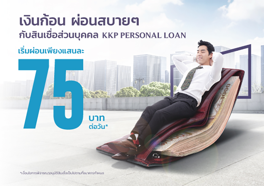 เงินก้อน ผ่อนสบายๆ กับสินเชื่อส่วนบุคคล KKP Personal Loan เริ่มผ่อนเพียงแสนละ 75 บาท/วัน