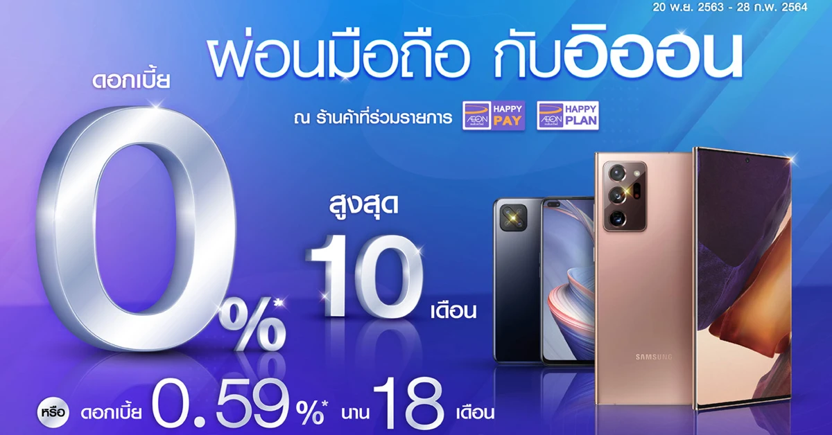 ผ่อนมือถือ กับอิออน ดอกเบี้ย 0% นานสูงสุด 10 เดือน ณ ร้านค้าที่ร่วมรายการ