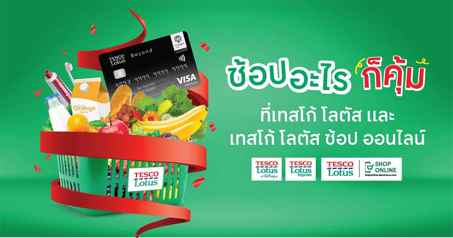 บัตรเครดิตเทสโก้ โลตัส วีซ่า ช้อปอะไรก็คุ้ม เมื่อช้อปที่เทสโก้ โลตัส ทุกสาขา และเทสโก้ โลตัส ช้อป ออนไลน์ ผ่านบัตรเครดิตเทสโก้ โลตัส วีซ่า