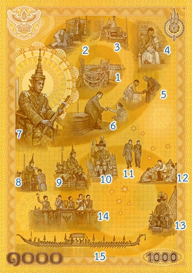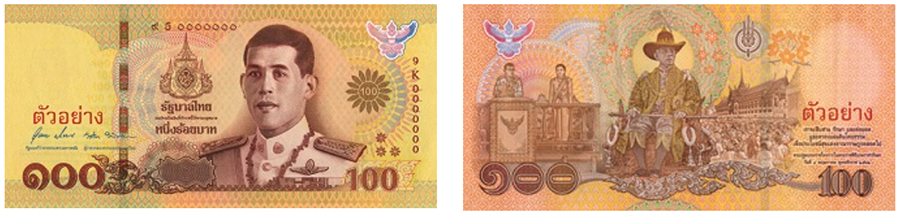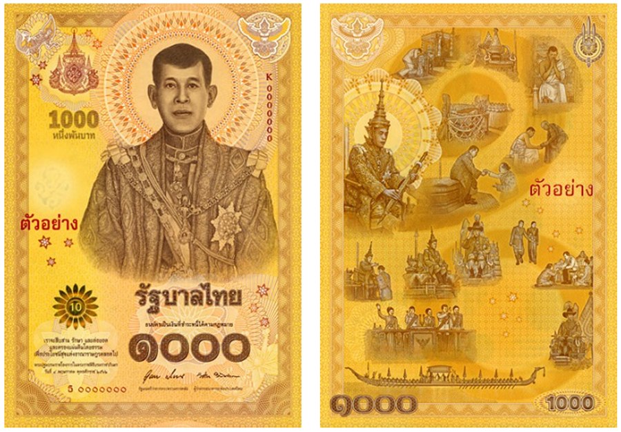 - เชิญพระปฐมบรมราชโองการไว้ที่เบื้องขวาของธนบัตร