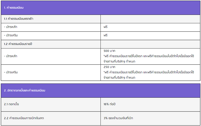 - รับเครดิตเงินคืน 1% เมื่อมียอดใช้จ่ายในประเทศไทย