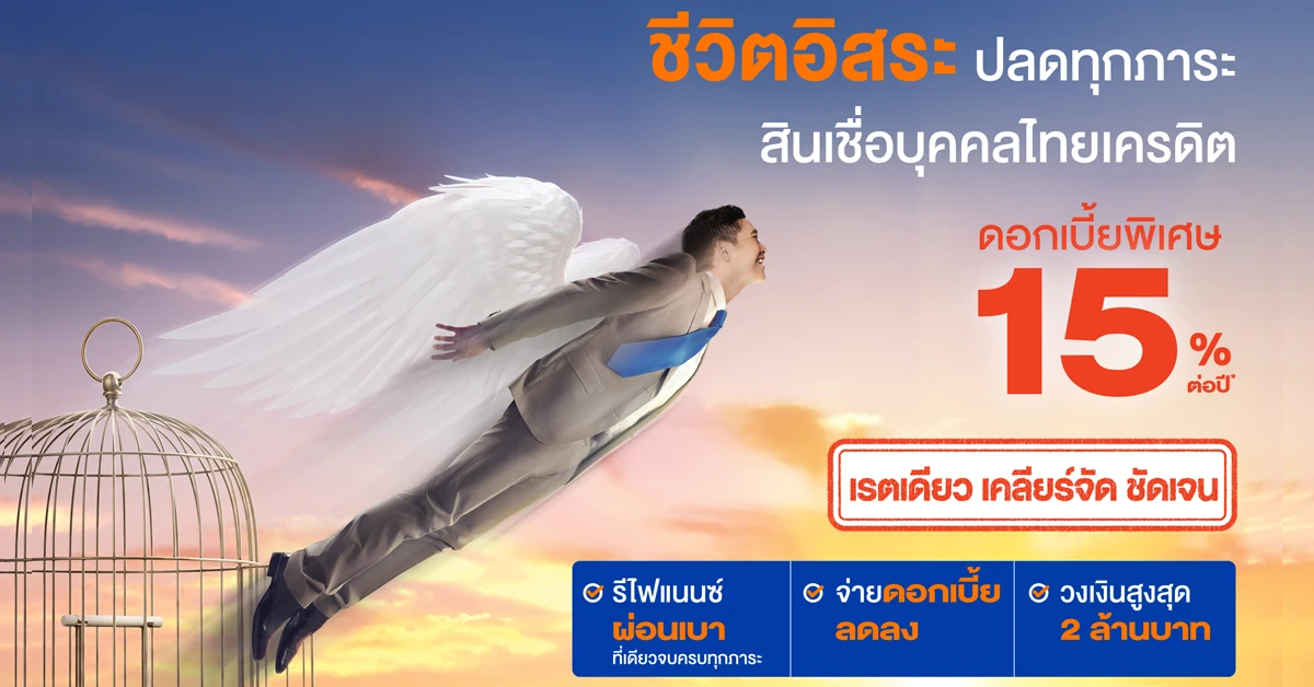 สินเชื่อบุคคล ธนาคารไทยเครดิตเพื่อรายย่อย มอบชีวิตอิสระ สำหรับพนักงานเงินเดือนประจำ รายได้ต่อเดือน 50,000 บาทขึ้นไป ที่ทำงานในกรุงเทพ นนทบุรี ปทุมธานี สมุทรปราการ สมุทรสาคร นครปฐม และชลบุรี
