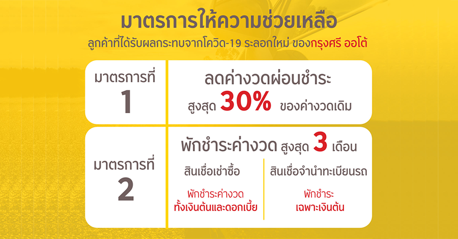 "กรุงศรี ออโต้" ประกาศมาตรการช่วยเหลือลูกค้า ที่ได้รับผลกระทบจากการระบาดของโควิด-19 ระลอกใหม่