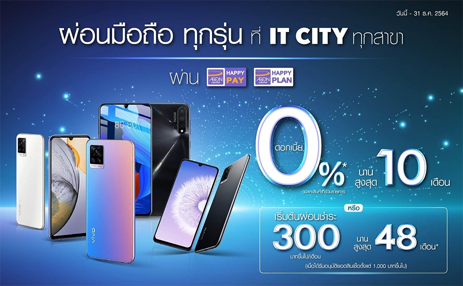 ผ่อนมือถือ ทุกรุ่นที่ร่วมรายการ ดอกเบี้ย 0% นานสูงสุด 10 เดือน ที่ร้าน IT CITY ทุกสาขา