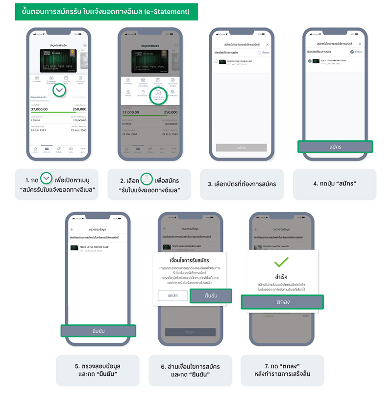 *สมัครบัตรฯ จะต้องมียอดผ่านบัตร เพื่อรับใบแจ้งยอดบัญชีอิเล็กทรอนิกส์ (e-statement) ติดต่อกัน 2 รอบบัญชี