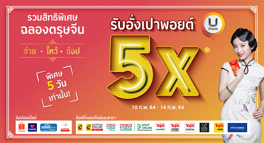 *รับพอยต์ 5X (พอยต์ปกติ 1 เท่า และพอยต์พิเศษ 4 เท่า) จำกัดพอยต์พิเศษสูงสุด 1,600 พอยต์/บัญชีบัตรหลัก/ตลอดรายการ