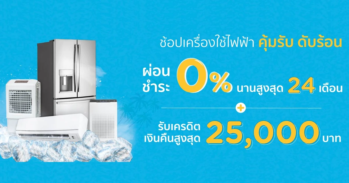 คุ้มรับ ดับร้อน?ช้อปเครื่องใช้ไฟฟ้ากับบัตร KTC - ผ่อนชำระ 0% นานสูงสุด 24 เดือน