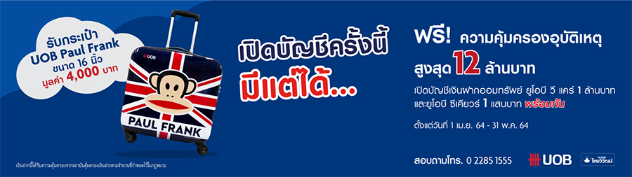 เปิดบัญชีเงินฝากธนาคารยูโอบี วันนี้ รับกระเป๋า UOB Paul Frank ขนาด 16 นิ้ว*