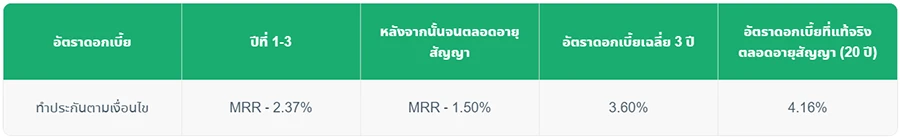 รายละเอียดและเงื่อนไขการเข้าร่วมโครงการ - อัตราดอกเบี้ย MRR = 5.97% (ประกาศ ณ วันที่ 22 พ.ค. 2563) ทั้งนี้อัตราดอกเบี้ย MRR ใหอ้างอิงอัตราตอกเบี้ยตามประกาศของธนาคาร ณ วันที่ลูกค้ายื่นใบสมัครสินเชื่อ