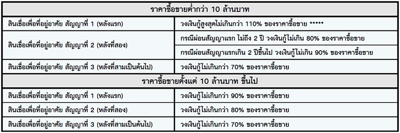 • ราคาซื้อขายของหลักประกันต้องมีราคา (แนวราบ) ไม่น้อยกว่า 2.00 ล้านบาท , (แนวสูง) ไม่น้อยกว่า 2.50 ล้านบาท