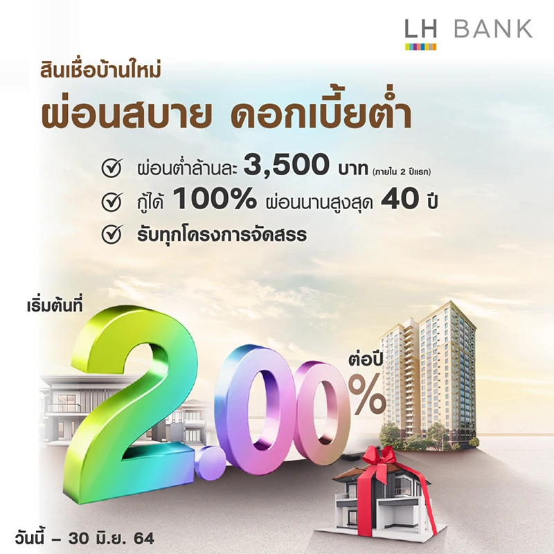 โฮมโลน โดนใจ สินเชื่อบ้านดอกเบี้ยต่ำ 2.00% ผ่อนสบาย จาก LH Bank