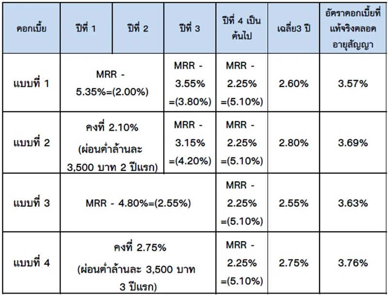 1) ทำประกัน MRTA/MLTA : ปีที่ 1-3 : MRR - 2.75% = 4.60% หรือ