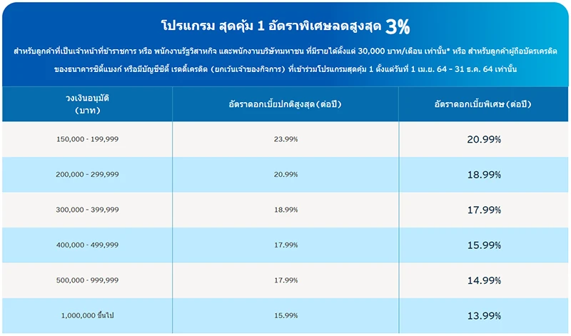 • วงเงินอนุมัติสินเชื่อบุคคลสุงสุดไม่เกิน 2,000,000 บาท