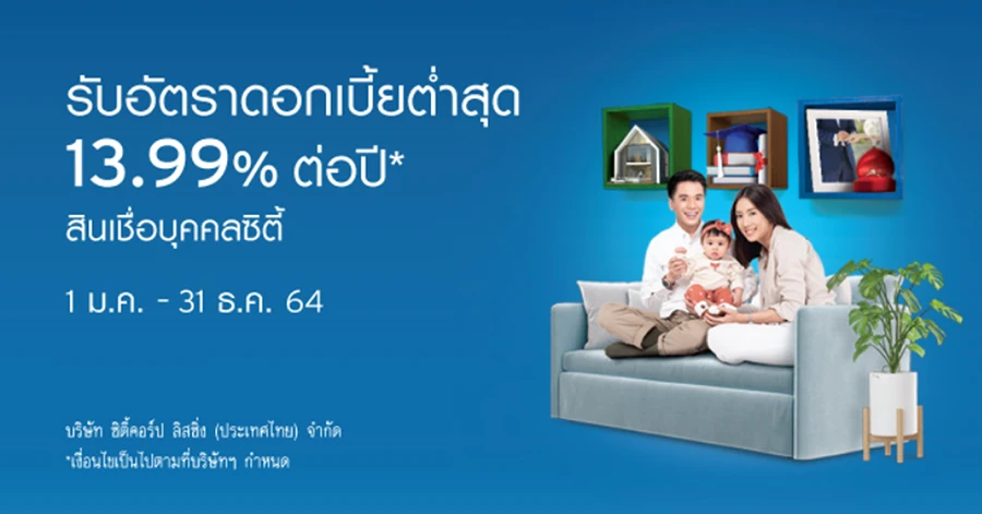 สินเชื่อบุคคลซิตี้ ดอกเบี้ยพิเศษต่ำสุด 13.99% ต่อปี ไม่ต้องใช้หลักทรัพย์หรือผู้ค้ำประกัน