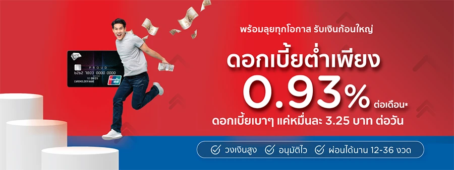 รับเงินก้อน ผ่อนเป็นงวด เงินกู้ดอกเบี้ยต่ำ ดอกเบาๆ เพียง 0.93% ต่อเดือน กับ KTC PROUD