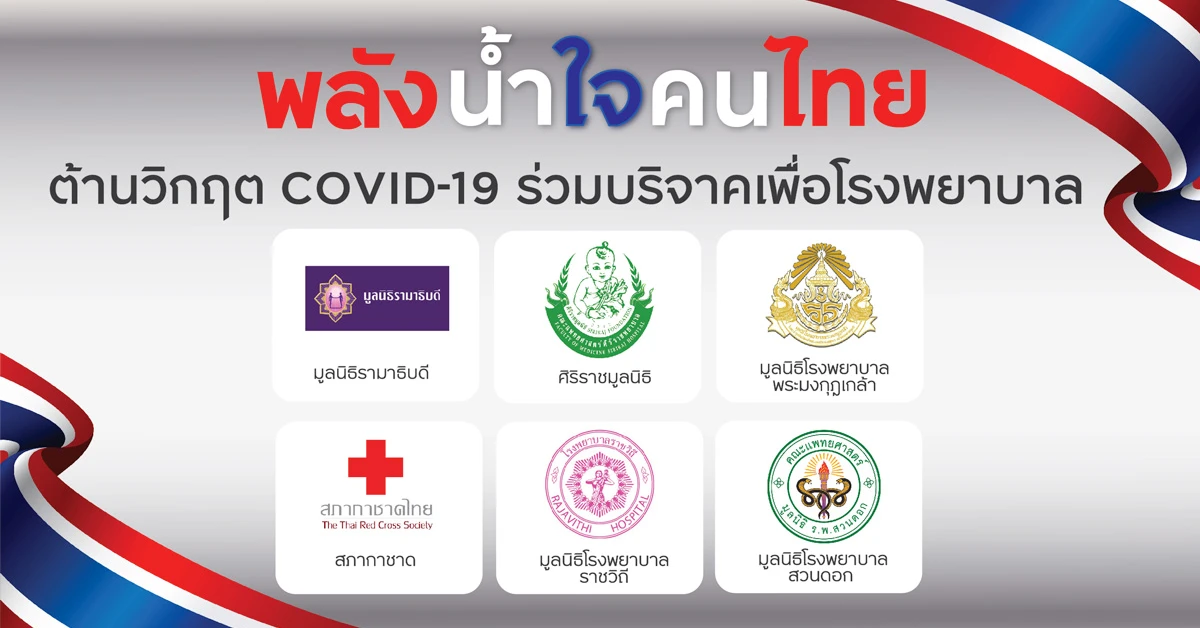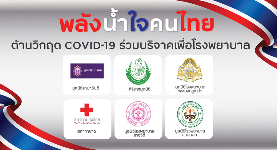 "พลังน้ำใจคนไทย ต้านวิกฤต COVID-19" แลกพอยต์เป็นเงินบริจาค สมทบทุนโรงพยาบาล เพื่อจัดหาอุปกรณ์ทางการแพทย์ และรักษาผู้ป่วย COVID-19 กับ มูลนิธิรามาธิบดี,ศิริราชมูลนิธิ,มูลนิธิโรงพยาบาลพระมงกุฎเกล้าฯ, สภากาชาดไทย, มูลนิธิโรงพยาบาลราชวิถี และ มูลนิธิโรงพยาบาลสวนดอก