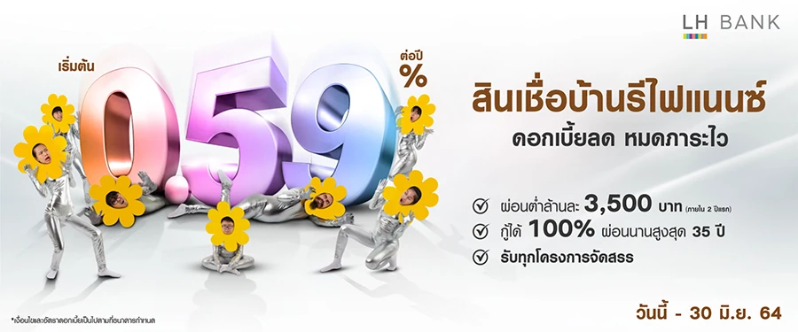 สินเชื่อบ้านรีไฟแนนซ์ ดอกเบี้ยต่ำเพียง 0.59% ต่อปี รับทุกโครงการจัดสรร ถึง 30 มิ.ย. 64