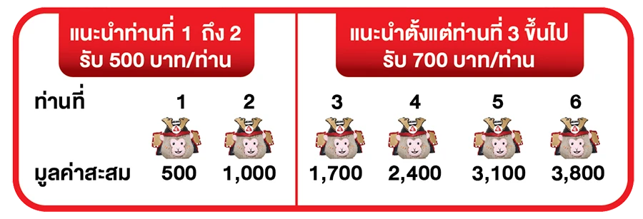- แนะนำท่านที่ 1 ถึง 2 รับเครดิตเงินคืน มูลค่า 500 บาทต่อท่าน