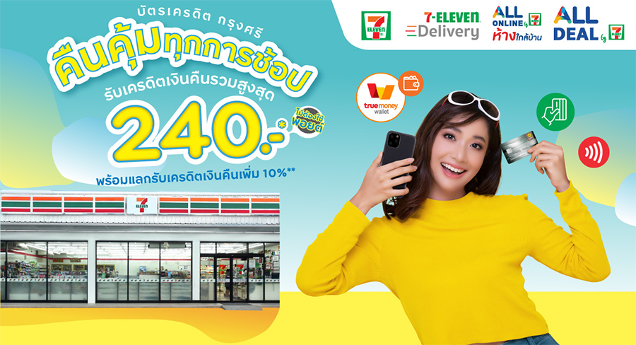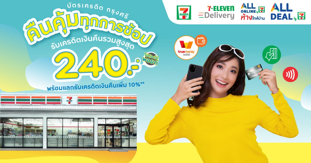 คืนคุ้ม ทุกการช้อปที่ 7-Eleven กับบัตรเครดิต กรุงศรี รับเครดิตเงินคืนรวมสูงสุด 240 บาท