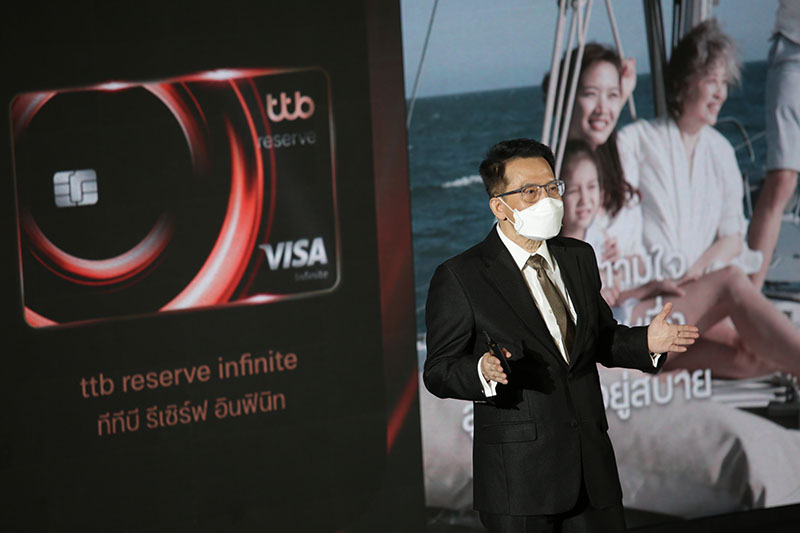 ทีเอ็มบีธนชาต หรือ ทีทีบี (ttb) เปิดตัวบริการใหม่ "ทีทีบี รีเซิร์ฟ" (ttb reserve) สำหรับลูกค้ากลุ่มที่มีความมั่งคั่งสูง ด้วยแนวคิดความสำเร็จต่อยอดได้ไม่มีที่สิ้นสุด ยกระดับบริการและเอกสิทธิ์ขั้นสุด พร้อมเปิดตัวบัตรเครดิต ttb reserve เพื่อตอบโจทย์ความต้องการของลูกค้า ได้แก่ ทีทีบี รีเซิร์ฟ วีซ่า อินฟินิท (ttb reserve visa infinite) และทีทีบี รีเซิร์ฟ วีซ่า ซิกเนเจอร์ (ttb reserve visa signature) ชูจุดเด่นเรื่องคะแนนสะสมที่ได้เร็วเหนือใคร โดยยังไม่จำเป็นต้องใช้จ่ายผ่านบัตรและการนำคะแนนสะสมที่ได้รับไปต่อยอด เพื่อตอบโจทย์ทั้งด้านการเงิน การลงทุน และไลฟ์สไตล์ ที่สามารถเลือกสิทธิประโยชน์ได้ตามความสนใจ พร้อมส่งต่อความสำเร็จจากรุ่นสู่รุ่นได้อย่างไม่มีที่สิ้นสุด ด้วยการดูแลอย่างใกล้ชิดผ่านบริการที่ปรึกษาการเงินการลงทุนส่วนบุคคล เพื่อชีวิตทางการเงินดีขึ้นทั้งวันนี้และอนาคต