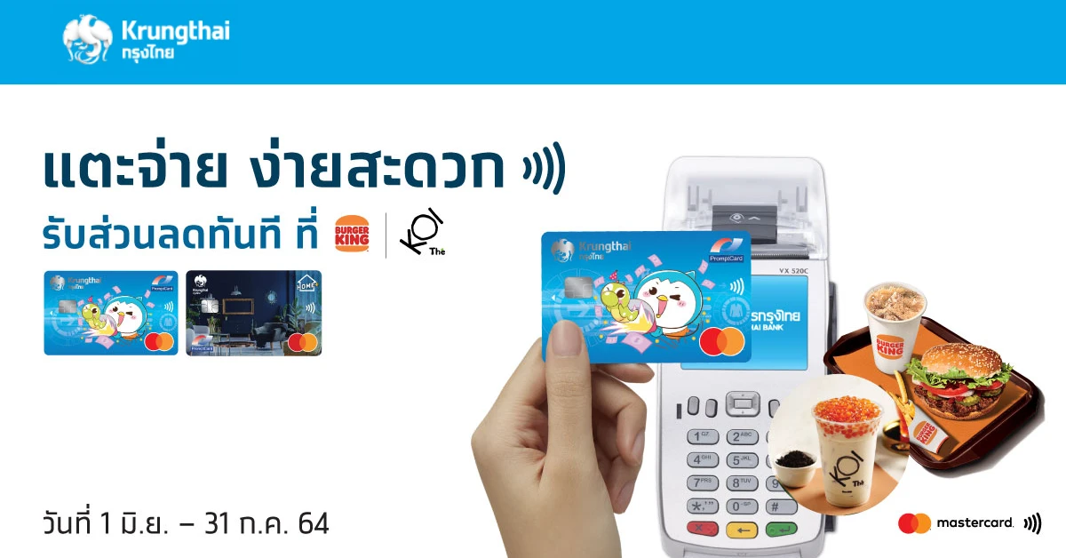 สิทธิพิเศษ! ลูกค้าบัตรเดบิตกรุงไทย มาสเตอร์การ์ด และบัตรเดบิตกรุงไทย โฮมพลัส เมื่อแตะจ่ายผ่านบัตรฯ ที่มีเครื่องหมาย Contactless ตามเงื่อนไขที่กำหนด
