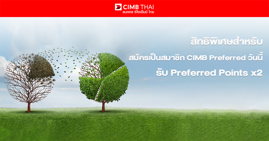 สิทธิพิเศษสำหรับลูกค้าที่สมัครเป็นสมาชิก CIMB Preferred วันนี้ รับ Preferred Points x2