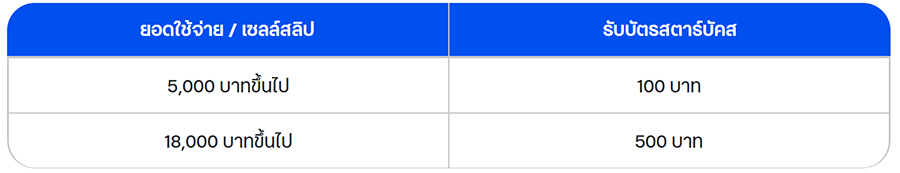- จํากัดการรับบัตรสตาร์บัคส์สูงสุด 1,500 บาท / บัตร / ตลอดรายการ โดยจํากัดมูลค่าบัตรสตาร์บัคส์ 100 บาท จํานวน 250 สิทธิ์ และจํากัดบัตรสตาร์บัคส์ มูลค่า 500 บาท จํานวน 120 สิทธิ์ / ตลอดรายการส่งเสริมการขาย โดยธนาคารขอสงวนสิทธิ์มอบบัตร