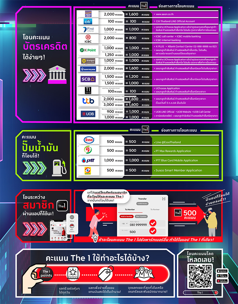 เปิดลายแทงโอนคะแนนสุดคุ้ม! รวมกว่า 17 แบรนด์พาร์ทเนอร์ให้โอนคะแนนมาที่ The 1 ง่ายๆ ได้ทันที!