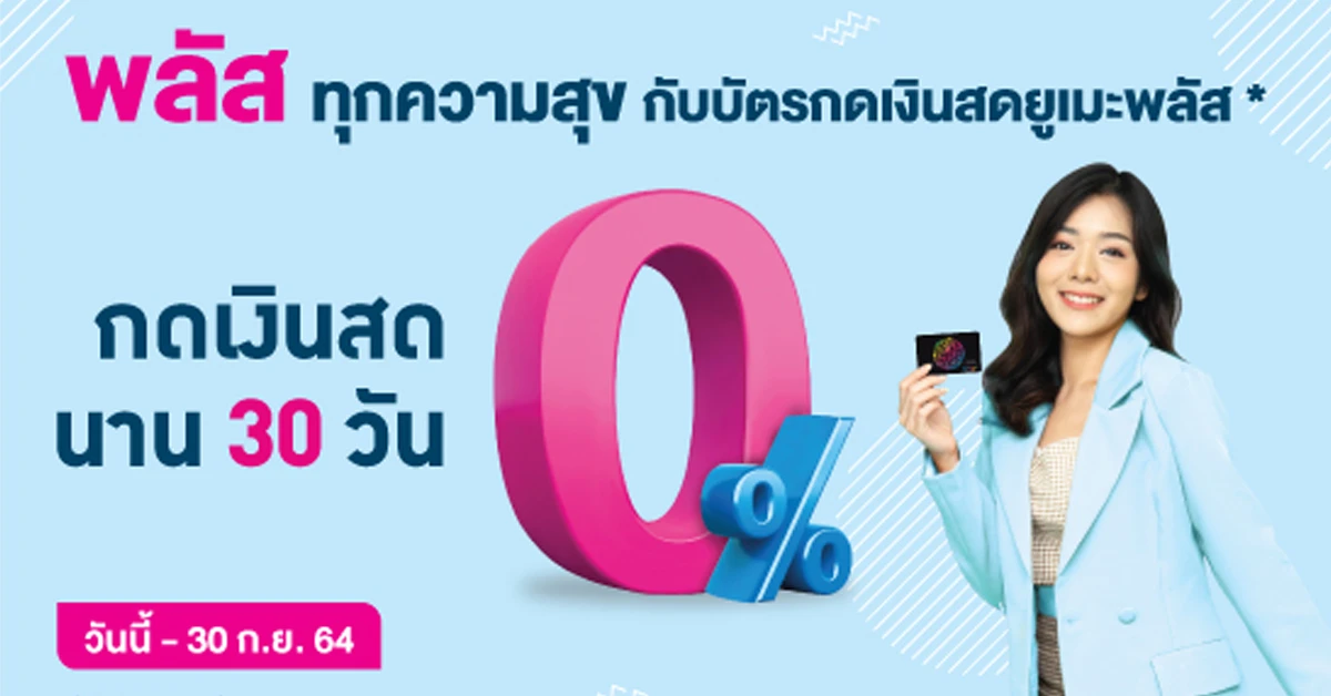 พลัสทุกความสุข กับบัตรกดเงินสดยูเมะพลัส เพียงสมัคร และอนุมัติเลือกรับเลย วันนี้ - 30 ก.ย. 64
