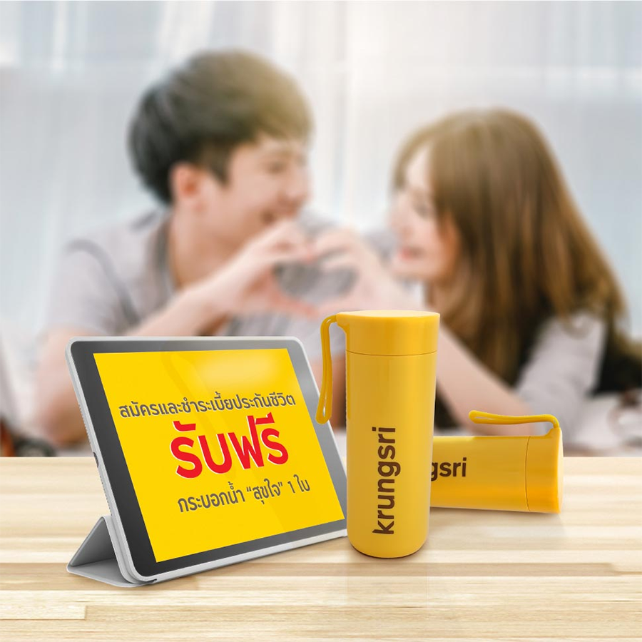สมัครและชำระเบี้ยประกันชีวิตที่ร่วมรายการ วันนี้! รับฟรี กระบอกน้ำ "สุขใจ" 1 ใบ มูลค่า 389 บาท