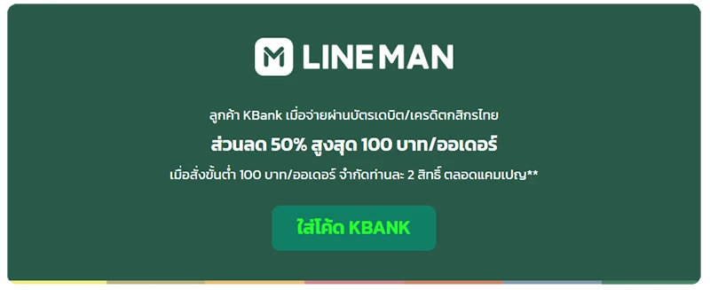 - ส่วนลดไม่สามารถใช้ร่วมกับส่วนลดอื่นของ LINE MAN ได้