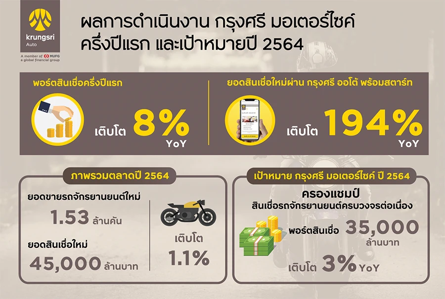 นางกฤติยา ศรีสนิท ประธานคณะเจ้าหน้าที่ด้านธุรกิจสินเชื่อยานยนต์ ธนาคารกรุงศรีอยุธยา จำกัด (มหาชน) กล่าวว่า "ตลาดรถจักรยานยนต์ในครึ่งปีแรกที่ผ่านมายังคงอยู่ในบริบทที่ท้าทาย จากกิจกรรมทางเศรษฐกิจที่ชะลอตัวจากมาตรการควบคุมการแพร่ระบาดของโรคโควิด-19 อย่างไรก็ตาม กรุงศรี มอเตอร์ไซค์ ยังคงรักษาการเติบโตของพอร์ตสินเชื่อไว้ได้ที่ 8% จากช่วงเดียวกันของปีก่อนหน้า ด้วยการให้ความสำคัญกับการนำนวัตกรรมดิจิทัลมาสนับสนุนการขายของพันธมิตรผู้แทนจำหน่ายฯ โดยเฉพาะ กรุงศรี ออโต้ พร้อมสตาร์ท ซึ่งช่วยให้ลูกค้าสามารถเช็กวงเงินประเมินสินเชื่อได้ด้วยตนเอง และอำนวยความสะดวกแก่ดีลเลอร์รถจักรยานยนต์ในช่วงเวลาที่แพลตฟอร์มออนไลน์กลายมาเป็นช่องทางสำคัญในการซื้อขาย โดยในครึ่งปีแรก ยอดสินเชื่อใหม่ของ กรุงศรี มอเตอร์ไซค์ ผ่าน กรุงศรี ออโต้ พร้อมสตาร์ท เติบโตสูงถึง 194% จากช่วงเดียวกันของปีก่อนหน้า"