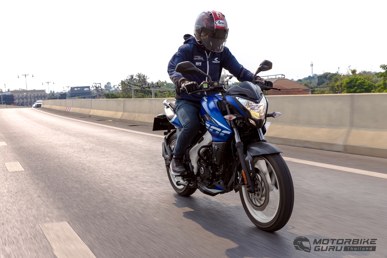 Bajaj Pulsar NS200 ใหม่ เป็นมอเตอร์ไซค์ สปอร์ตเนกเก็ตที่ให้ความคุ้มค่าและน่าใช้ในระดับราคารถเกียร์ไม่เกิน 100,000 บาท ซึ่งเจ้าตลาดหลายรุ่นต่างมีราคามากกว่า 9 แสนบาท เฟิร์สลุคทันทีที่ไปรับรถสีน้ำเงินตัดเฟรมเพอริมิเตอร์ขาวคันนี้ ให้อารมณ์แตกต่างจาก Dominar 400 ที่เคยขี่ทดสอบมา
