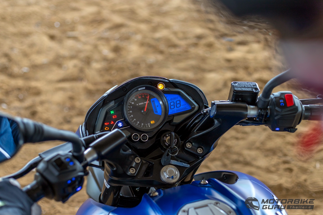 ดูเป็นรถที่พร้อมตอบโจทย์ความสนุก สไตล์มันๆ ของสายหล่อขี่เท่ การขึ้นคร่อมสำหรับผู้เขียนที่สูง 171 ซม. แค่ตวัดขาก็ขึ้นคร่อมสบาย เบาะสูงกำลังดีเท้าเหยียบพื้นได้ครึ่งทิ้งน้ำหนักได้สบาย สำรวจเรือนไมล์ที่เน้นวัดรอบอนาล็อกตรงกลางฟิลสปอร์ตเน้นๆ ผสานกับความเร็วแบบดิจิตอลด้านขวา ผู้เขียนเซ็ตทริปเดินทาง (Trip 1) พร้อมออกไปหาคำตอบบนถนนจริง