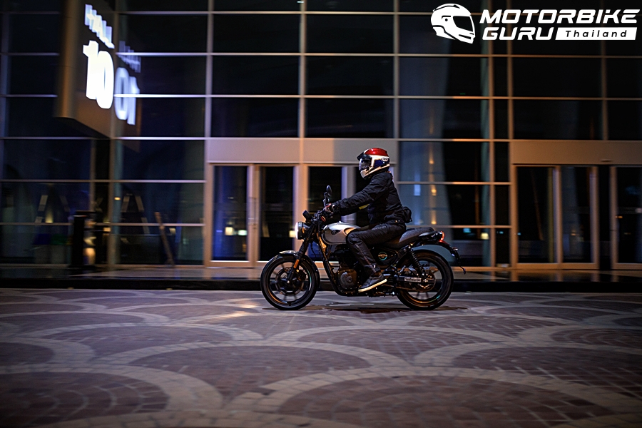 หลังจากขับขี่บนถนนทั่วไปก็มาถึง Impact Speed Park เมืองทองธานี ซึ่งต้องบอกว่าฝนยังตกอยู่ จึงไม่กล้าใช้ความเร็วสูงมากนัก แต่เมื่อลองขับจริงกลับให้ความมั่นใจทั้งการเข้าโค้งแคบหรือกว้าง โค้งตัวเอสที่ต้องเปลี่ยนมุมเอนไปมา Hunter 350 ถือว่าทำได้ดี เบา เข้าโค้งง่าย เบรกและยางเกาะหนึบมั่นใจ ทำให้ขับในสนามได้อย่างปลอดภัยครับ