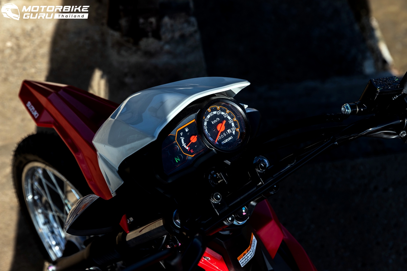 ด้วยเทคโนโลยีเครื่องยนต์ SEP (Suzuki Eco Performance) ขนาด 112.8 ซีซีขนาดกระทัดรัด น้ำหนักเบา แต่ให้สมรรถนะสูง ทนทาน แรงบิดดี ทั้งยังประหยัดน้ำมันมาก ด้วยกล่อง ECU ที่เซ็ตให้จ่ายเชื้่อเพลิงได้อย่างแม่นยำและเหมาะสมในทุกอัตราเร่ง ส่งผลให้การเผาไหม้สมบูรณ์ สตาร์ทติดง่าย ด้านฝาครอบตัวถังเป็นอีกจุดที่โดดเด่นเพราะทำจากวัสดุ Gloss Polypropylene งานเดียวกับที่ใช้กับรุ่น RM-Z เป็นการผสมสีลงไปกับตัวเนื้อวัสดุจึงทนทานต่อรอยขีดข่วนและมีความยืดหยุ่นสูง แตกยาก สำหรับช่วงล่างด้านหน้าติดตั้งโช้กอัพขนาดใหญ่ 31 มม. พร้อมยางกันฝุ่น ด้านหลังโช้กอัพคู่แบบ Double Cylinder ให้ความทนทานซับแรงสะเทือนได้ดีกว่า ยางที่ใช้เป็นแบบ Semi-Block ใช้งานครอบคลุมทั้งออนโร้ดและออฟโร้ดแบบดูอัลสปอร์ต สุดท้ายระบบเบรกด้านหน้าดิสก์แบรนด์ Nissin เกรดเดียวกับที่ใช้ในกลุ่มซูซูกิโมโตครอส น้ำหนักเบาหยุดดี