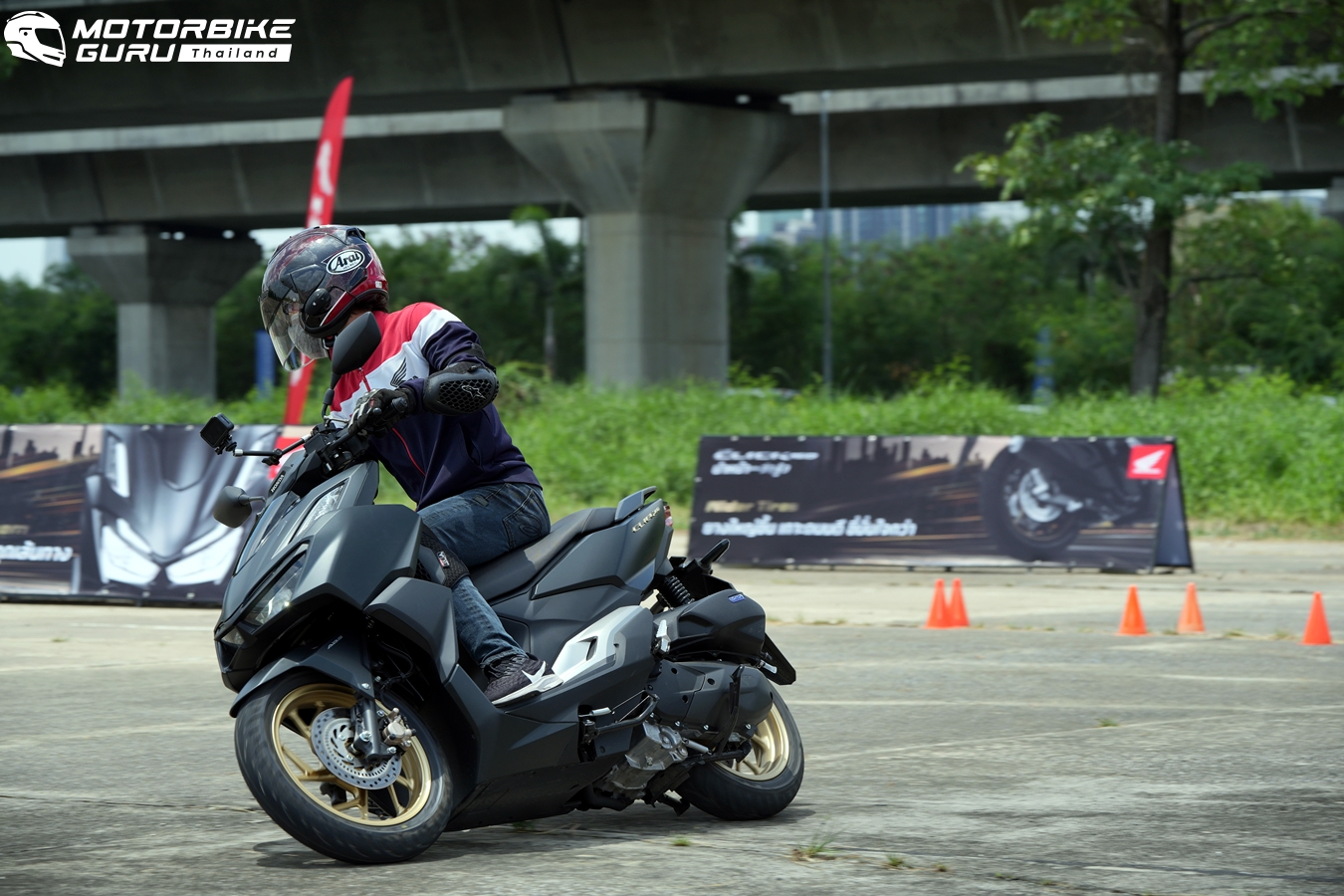 จุดสำคัญคือ การเบรกบนพื้นผิวทรายที่เทกระจายรอบ แม้เป็น ABS หน้า แต่ระบบก็ทำงานสะท้อนขึ้นมาให้ได้รู้สึกและไหลหยุดได้สั้นจริง ผู้เขียนลองกระแทกคันเร่งออกตัวแบบทันทีบนพื้นผิวทราย ตั้งใจให้ล้อหลังเสียแทร็คชันเพื่อจับอาการว่ารถคลาสนี้ที่ไม่มี แทร็คชัน คอนโทรล จะตอบสนองเวลาออกตัวบนพื้นลื่นอย่างไร ก็พบว่าล้อหลังที่เริ่มฟรีจนท้ายรถเริ่มดันออกข้างให้รู้สึก ก็สวยด้วยการยกคันเร่งจนรถเริ่มทรงตัวตรงแล้วเปิดคันเร่งไปต่อได้แบบสบายๆ การขี่ทดสอบเน้นไปที่เรื่องของสมรรถนะตัวรถเป็นหลักซึ่ง All New Click 160 ทำได้ดีเยี่ยมจากความรู้สึกที่ได้ขี่เทียบกับกลุ่มรถขนาดไม่เกิน 160 ซีซี ในราคาไม่เกิน 7 หมื่นบาท ขี่แล้วชอบเลย