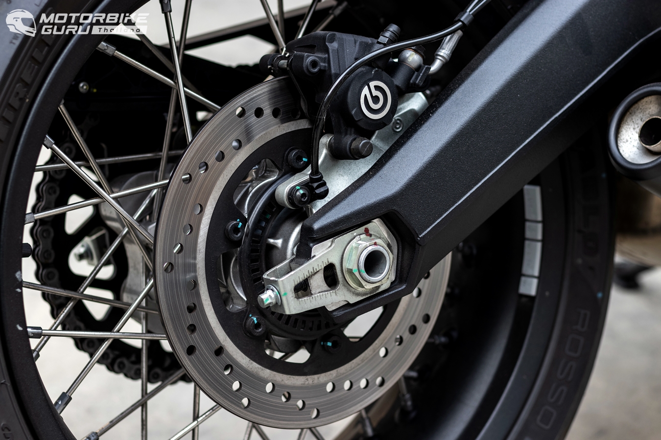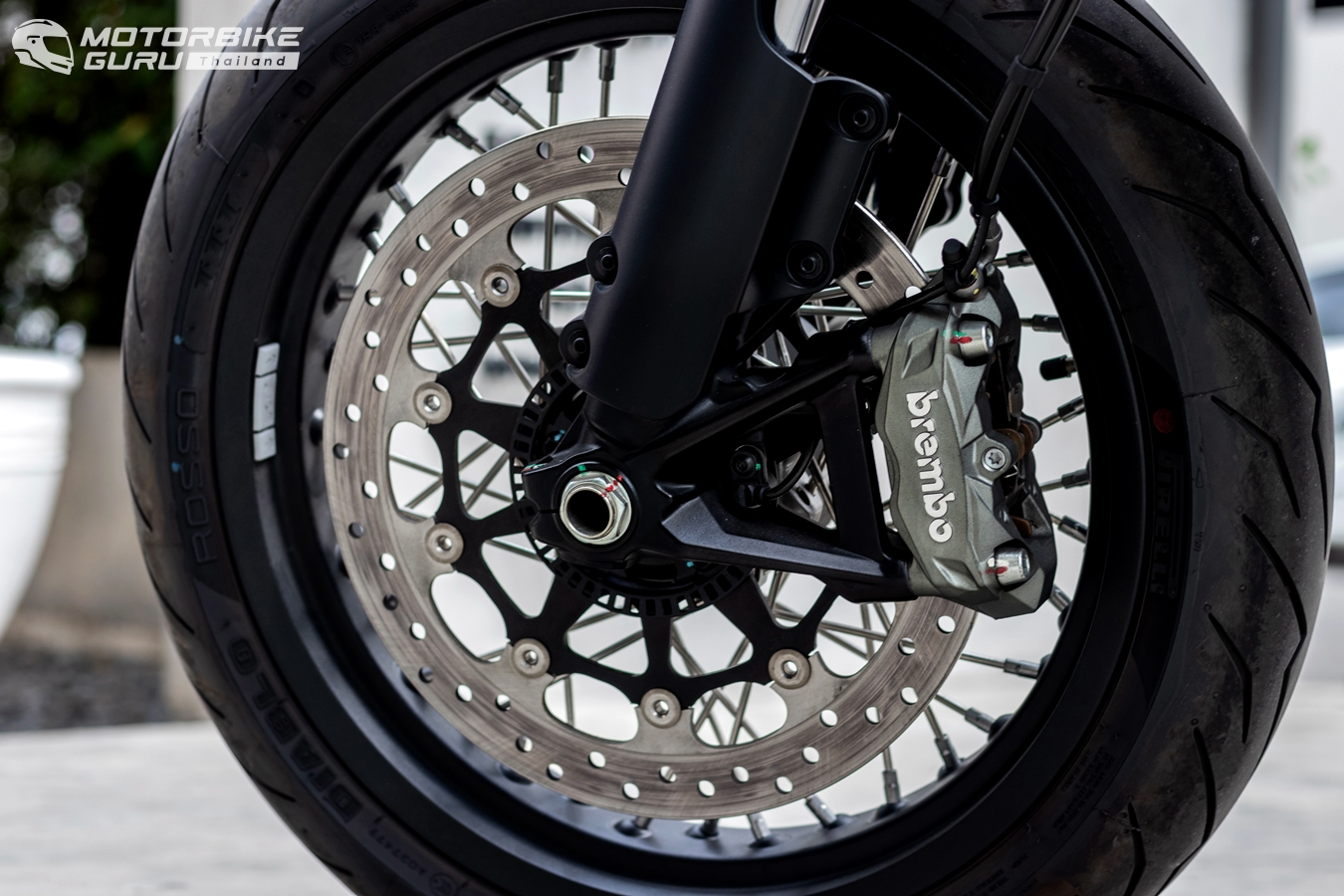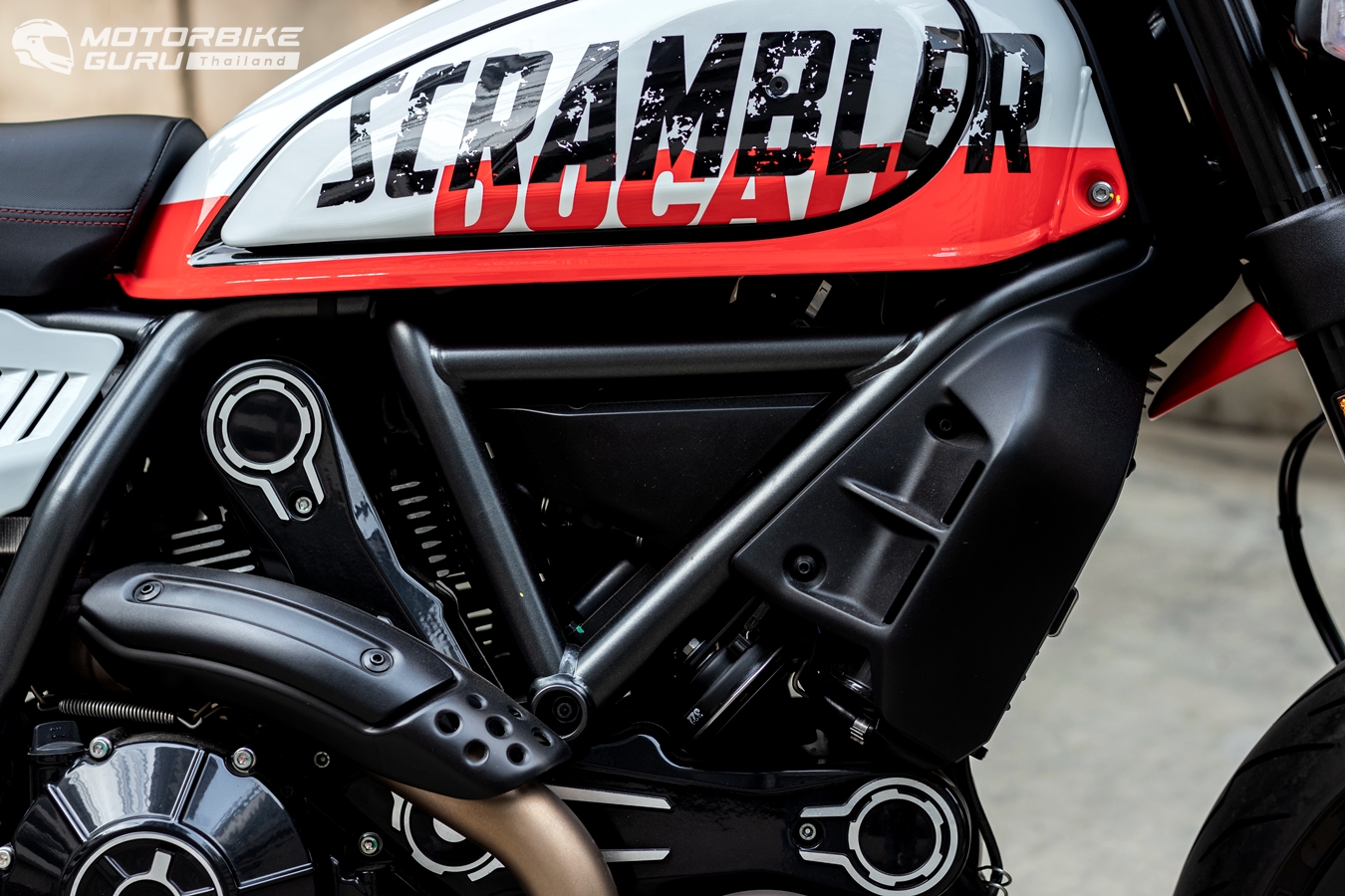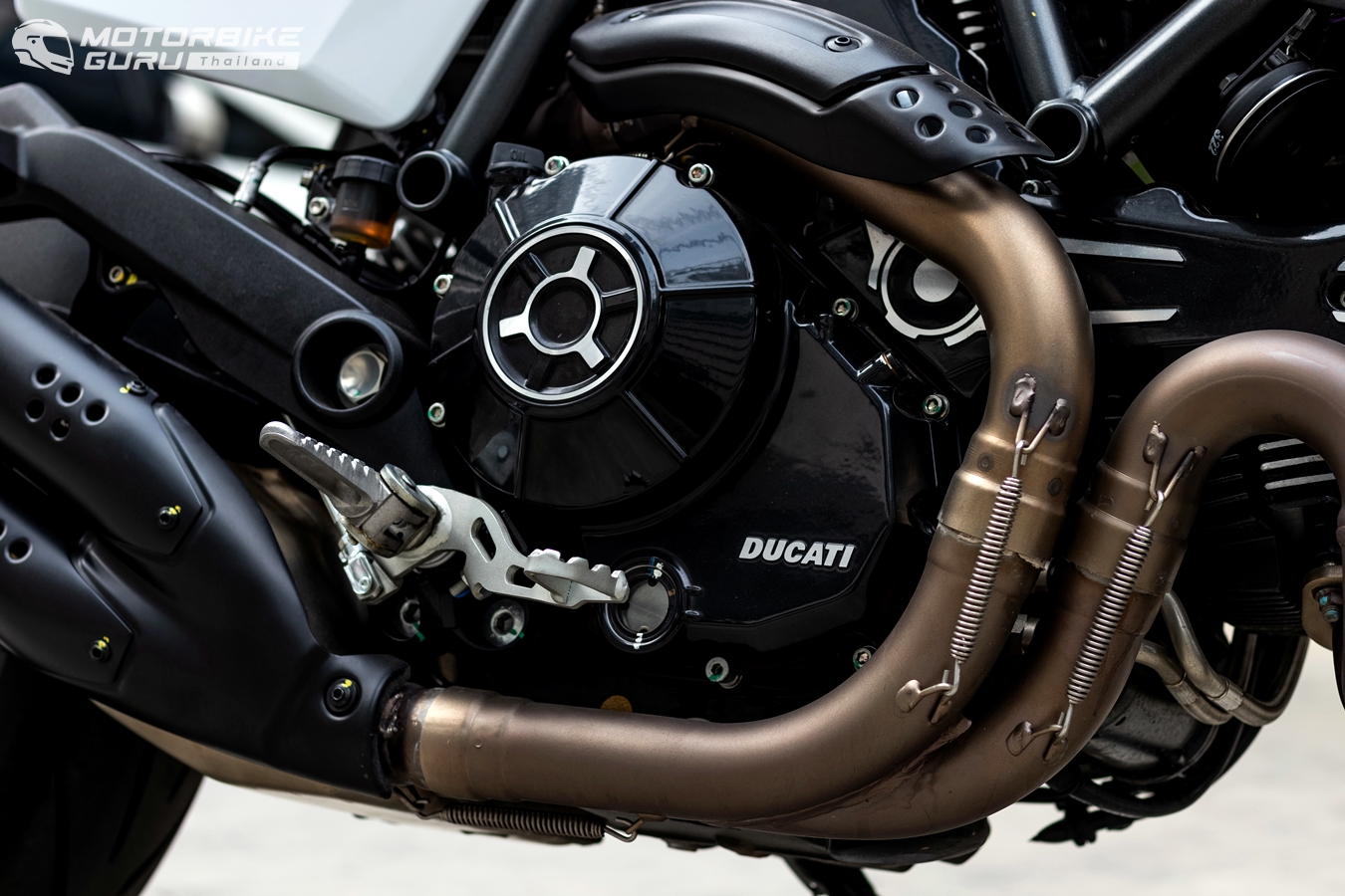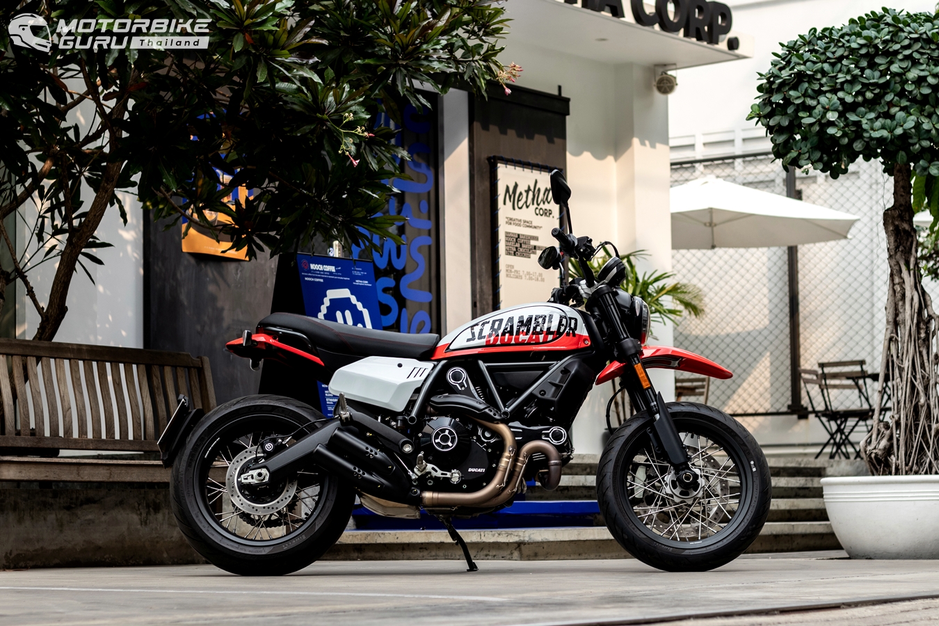 ดูคาติ Scrambler Urban Motard ได้แนวคิดต่อยอดจากรุ่น Hypermotard RVE 950 แต่ใส่ความเฉพาะตัวลงไปให้มากขึ้น เน้นซิ่งสนุก บิดมันเร้าใจสไตล์ซูเปอร์โมโตมากกว่าสแครมเบลอร์ทั่วไป ด้วยางสปอร์ตหน้า-หลังขนาด 17 นิ้ว พีเรลลี่ Diablo Rosso III ด้านหน้า 120/70 หลัง 180/50 เกรด ZR ชัดเจนว่ารองรับการขี่แบบดุดันและเน้นสมรรถนะการยึดเกาะ ด้านขุมพลังใช้เครื่องยนต์ วี-ทวิน ขนาด 803 ซีซี ระบายความร้อนด้วยอากาศ (นั่นคือเหตุผลว่าทำไมควรไปขี่แถวชานเมืองหรือตัวเมืองในจังหวัดที่การจราจรไม่หนาแน่น) สำหรับกำลังสูงสุดอยู่ที่ 73 แรงม้าที่ 8,250 รอบต่อนาที แรงบิดอยู่ที่ 66 นิวตันเมตรที่ 5,750 รอบต่อนาที