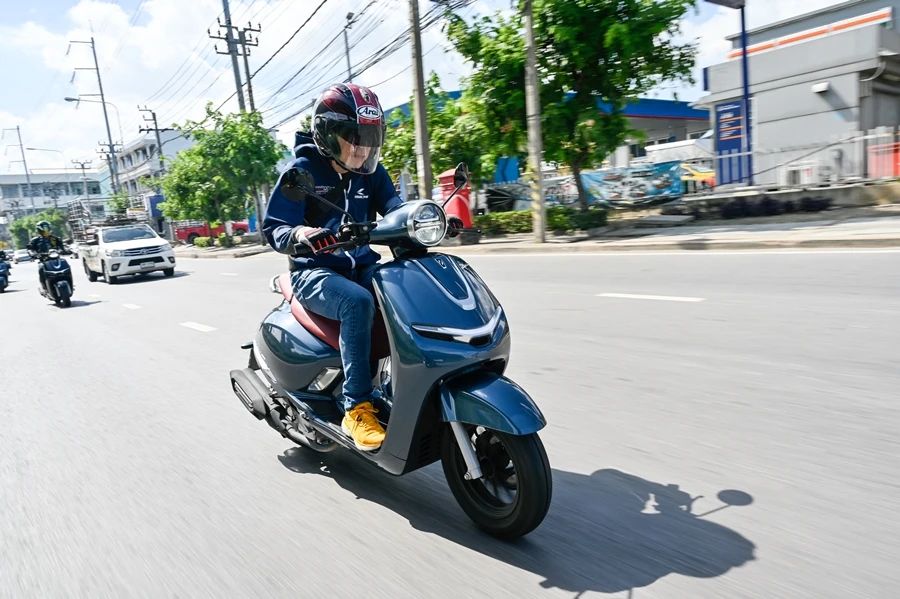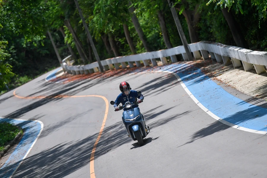 ทริปนี้เราไปเริ่มกันที่ บริษัท ทริลเลี่ยน มอเตอร์ (ไทยแลนด์) จำกัด พระราม 9 มุ่งหน้าไปทาง นครชัยศรี จังหวัดนครปฐม จุดพักแรกเป็นหลังออกจากการขี่ฝ่าการจราจรหนาแน่นของตัวเมืองกรุงเทพฯ สู่ถนนเพชรเกษม เป็นร้านกาแฟสตาร์บัค เดอะ มู๊ด แวะพักดื่มกาแฟหลังโยกรถกันมาจากในเมือง ซึ่ง Horizon300 ให้สมรรถนะที่คล่องตัวมาก แม้เป็นสกู๊ตเตอร์คลาส 300 แต่ก็มีขนาดมิติตัวรถที่ไม่ใหญ่เลย ดูใกล้เคียงกับคลาส 150 ด้วยซ้ำ นั่นทำให้การบังคับควบคุมตัวรถในเมืองทำได้ดีมากๆ ท่านั่งให้ระยะแขนกับเบาะกำลังดี แต่ติดที่ทรงเบาะเทสโลปไปด้านหน้า ทำให้ต้องคอยขยับบ่อย นอกจากนี้ความยาวเบาะก็สั่นไปทำให้การเคลื่อนไหวบนเบาะทำได้จำกัด ส่วนมุมมองกระจกมองข้างบนต่ำแหน่งแฮนด์ ปุ่มแตร ไฟเลี้ยว วางตำแหน่งใช้งานง่าย คุ้นชินไม่ยาก หน้าจอเรือนไมล์แบบสี มีรายละเอียดพอสมควร แต่กลับมีแสดงข้อมูลแค่ระยะทางรวม และทริปเดียว ตำแหน่งชิลด์ปรับไม่ได้ จากร้านสตาร์บัคเราเดินทางขี่ยาวๆ เข้าเมืองราชบุรีขึ้นไปพักถ่ายรูปที่เขาแก่นจันทร์ ซึ่งทางขึ้นเขาคดเคี้ยวด้วยโค้งซ้ายขวาท้าทายการควบคุมตัวรถไม่น้อย ด้านบนแวะจอดพักชื่นชมทัศนีย์ภาพของตัวเมืองราชบุรีในมุมสูงแบบรอบด้าน นอกจากนี้ยังได้แวะกราบพระพุทธนิรโรคันตรายชัยวัฒน์จตุรทิศที่ประดิษฐานอยู่ด้านบนเพื่อเป็นสิริมงคลก่อนได้เวลาอันสมควรเดินทางต่อ ซึ่งการขี่ลงเขาแก่นจันทร์ก็เป็นอีกช่วงทดสอบที่นับว่าท้าทายมากที่สุด การลีนเข้าโค้งทางลงของตัวรถรุ่นนี้มีข้อจำกัดที่ขาตั้งคู่ ครู้ดพื้นง่ายมาก ต้องระวังไม่ให้มากเกินไปจนทำให้รถดีด ยางติดรถที่ให้มายังให้การยึดเกาะบนทางแห้งได้ดีอย่างน่าพอใจ กำลังรถช่วงขาขึ้นทางโค้งพับไต่แบบช้าแล้วเปิดคันเร่งตามก็ยังตอบสนองได้ดีพอ ไม่มีอาการอืดหรือตื้อให้สัมผัส