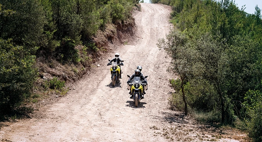 เครื่องยนต์ 2 สูบแถวเรียง 775 ซซ พัฒนาขึ้นใหม่ ปรับสมดุลด้วย "Suzuki Cross Balancer" ลดการสั่นสะเทือนที่เกิดจากเครื่องยนต์ ข้อเหวี่ยง 270° ความรู้สึกขี่สบาย เอาต์พุตราบรื่นและง่ายต่อการขี่ช่วงรอบต่ำ ไปจนถึงช่วงรอบสูง ให้กำลังที่ดีต่อเนื่องในช่วงความเร็วต่ำ จึงสามารถควบคุมคันเร่งได้สบายบนถนนคดเคี้ยวและลูกรัง ขนาดเครื่องยนต์กะทัดรัด สั้น ทำให้ได้ตำแหน่งการขี่ที่เหมาะสม
