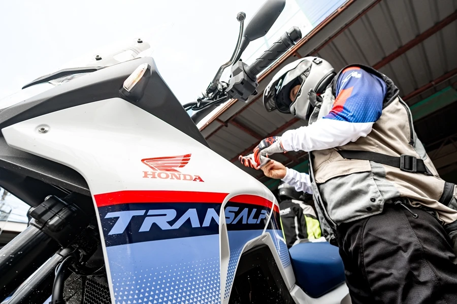 ทีมสื่อมวลชนทดสอบพร้อมกันที่ ศูนย์ฝึกขับขี่ปลอดภัยฮอนด้า กรุงเทพ โดยมีการแบ่งเป็นรอบสลับขี่ตามช่วงเวลาและรุ่นรถ ผู้เขียนได้ไปขี่ในช่วงบ่าย โดยไปรอสลับขี่รุ่น XL750 Transalp กลับกลุ่มแรกหลังพักรับประทานอาหารกลางวันที่ร้านไก่หุบบอน ก็แต่งตัวขี่ไปตามออนโร้ดได้ไม่นานก็ตัดเข้าสู่เส้นทางออฟโร้ดที่ผิวเส้นทางเป็นดินแข็ง ทราย โคลน บางช่วงเป็นซิ้งเกิ้ลแทร็คผ่านป่ารกครึ้ม เส้นทางวิ่งมีออนโร้ดน้อยมา ส่วนใหญ่อยู่ระหว่างชลบุรี - ระยอง ช่วงท้ายผ่านอ่างเก็บน้ำคลองบางใหญ่ ก่อนไปพักดื่มกาแฟที่ร้าน remind cafe บางละมุง ชลบุรี การขี่ได้ใช้โหมด สแตนดาร์ด สลับกับ Gravel พร้อมปรับแต่งเพิ่มเติมได้เองไม่ว่าการเพิ่มลดระบบแทร็คชัน ปิดเบรกเอบีเอสล้อหลัง การขี่โดยรวมไม่ได้ใช้ความเร็วมาก ทางเนินชันขึ้นลงแทบไม่มี ส่วนใหญ่เป็นทางราบที่พื้นผิวลื่นสลับถนน พอสรุปหลังขี่เบื้องต้นได้ดังนี้ ท่านั่งบน XL750 Transalp บนขุมพลังเครื่องยนต์ขนาด 750 ซีซีนั้น นับว่าสบายควบคุมตัวรถง่าย ความยาวและองศาแฮนด์ลงตัวกับผู้เขียน (172 cm)มาก ไม่รวมรองเท้าบูธ จอเรือนไมล์ TFT ขนาด 5 นิ้วมองได้ชัดเจนทั้งออกแดดและในร่มไม้ การเลือกปรับโหมดด้วยปุ่มควบคุมบนแฮนด์ด้านซ้ายทำได้สะดวก และเข้าใจง่าย การงัดเกียร์ขึ้นลงก็ไม่มีอะไรติดขัดแม้ขณะยืนขี่บนทางลูกรัง เส้นทางการขี่ทดสอบอาจไม่ได้โหดมากเหมือนเอนดูโร่แต่นั่นก็เพียงพอสำหรับ XL750 Transalp สแตนดาร์ดยางเดิมแสดงให้เห็นว่ารถมีความพร้อมในด้านแอดเวนเจอร์ทั่วไปจริงๆ อัตราสิ้นเปลืองจากตัวเลขบนหน้าจอคิดคำนวนไว้ได้ราว 21 กม./ล. นับว่าอยู่ในเกณฑ์ที่น่าพอใจกับเครื่องยนต์คลาสนี้และขี่ในสภาวะแบบนี้ ส่วนที่อยากให้ปรับแต่งเพิ่มเวลาขี่ทางออฟโร้ดก็น่าจะเป็นแผ่นรองเข่าติดถังน้ำมันเพราะเดิมๆ ค่อนข้างลื่น ส่วนตัวเองก็คงปรับเปลี่ยนบังลมหน้าให้สูงกว่านี้ นอกนั้นโดยรวมนับว่าดีและคุ้มค่าตัว 394,000 บาท (สีขาว)