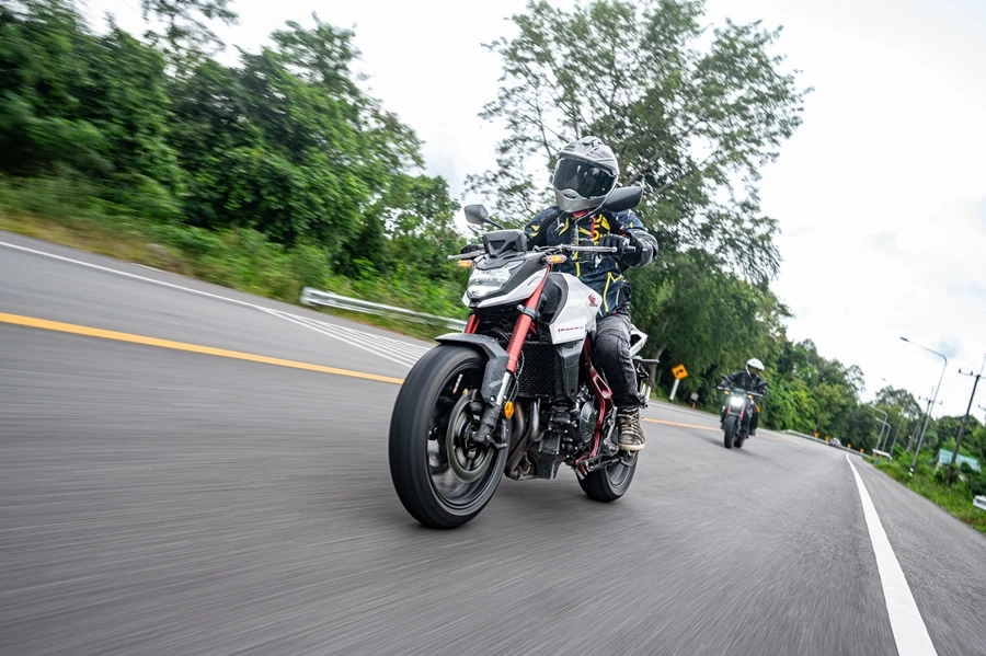 วันที่สองผู้เขียนได้ขี่รุ่น CB750 Hornet เน็กเกตไบค์ที่ใช้พื้นฐานเครื่องยนต์เดียวกันขนาด 750 ซีซี 2 สูบเรียง ซึ่งให้อารมณ์สปอร์ตสตรีทที่มากับแรงบิดที่ยอดเยี่ยมตั้งแต่รอบต่ำ ขี่ง่ายไม่ต่างจาก XL750 Transalp ความแตกต่างที่ชัดเจนนอกจากรูปทรงและประเภทของรถแล้ว โหมดที่ให้มาก็มี Sport, Standard, Rain และ User ซึ่งไม่มี Gravel เท่านั้นเอง ผู้เขียนนั่งรถมารอสลับขี่ในช่วงบ่ายเหมือนวันแรกโดยมารอเปลี่ยนมือที่ Pagoda Hill Cafe’ ชลบุรี แล้วขี่กลับยาวเข้า ศูนย์ฝึกขับขี่ปลอดภัยฮอนด้า กรุงเทพ การขี่บนถนนในเมืองหรือชานเมือง CB750 Hornet ให้ความสนุกไปพร้อมกับขุมพลังและการแฮนเดิลลิ่งตัวรถ การเข้าโค้งความเร็วทำได้ดี แต่บนพื้นผิวที่มีทรายหรือเศษดินตัวรถก็ออกอาการสลิปที่ล้อหลังให้รู้สึกอยู่ และชัดเจนมากขึ้นในช่วงที่ขี่บนถนนเปียกลื่นหลังมีฝนตกลงมา แม้เป็นการขี่ทางตรงก็มีอาการให้รับรู้เป็นบางจังหวะอาจเป็นเพราะยางที่ให้เป็นแบบสปอร์ตเน้นทางแห้งมากกว่า เอาเป็นว่าใครที่มองหาบิ๊กไบค์สไตล์สปอร์ตสตรีทในราคาไม่เกิน 4 แสนบาท CB750 Hornet ที่เป็นโมเดลใหม่หมด เครื่องยนต์ก็บล็อคใหม่ ก็น่าจะตอบโจทย์ความคุ้มค่าลงตัวระของคนที่อยากได้ความแรงที่มากกว่า 650 ซีรี่ส์อีกหน่อย แต่ราคายังคงจับต้องได้ง่ายเหมือนเดิม เช่นเดียวกับ XL750 Transalp ถ้าคิดว่า 500X ไม่พอมือ NC750 ก็ยังไม่ใช้ตัวเลือกในการขี่ลุยบ้าง CRF 1100L Africa Twin ก็ราคาแรงเกินงบไปเยอะ Transalp เป็นคำตอบที่ชัดเจนมาก ยิ่งเทียบกับคู่แข่งในคลาสเดียวกันที่ราคาเกือบ 5 แสนบาท ก็นับว่าเด่นในเรื่องความคุ้มค่าจริงๆ
