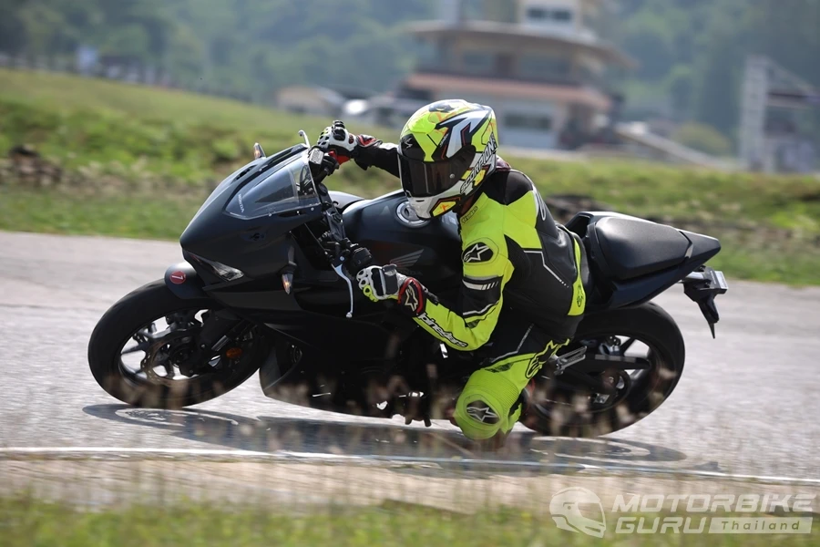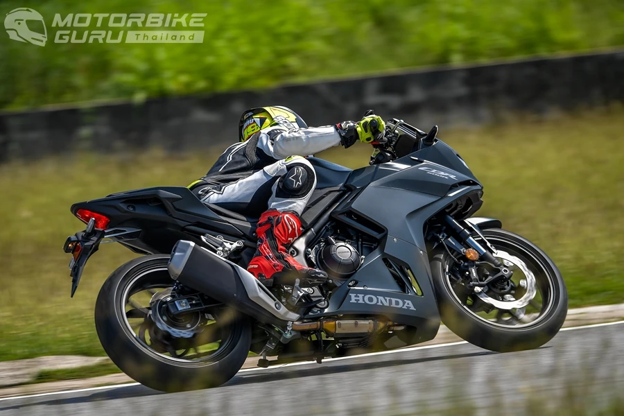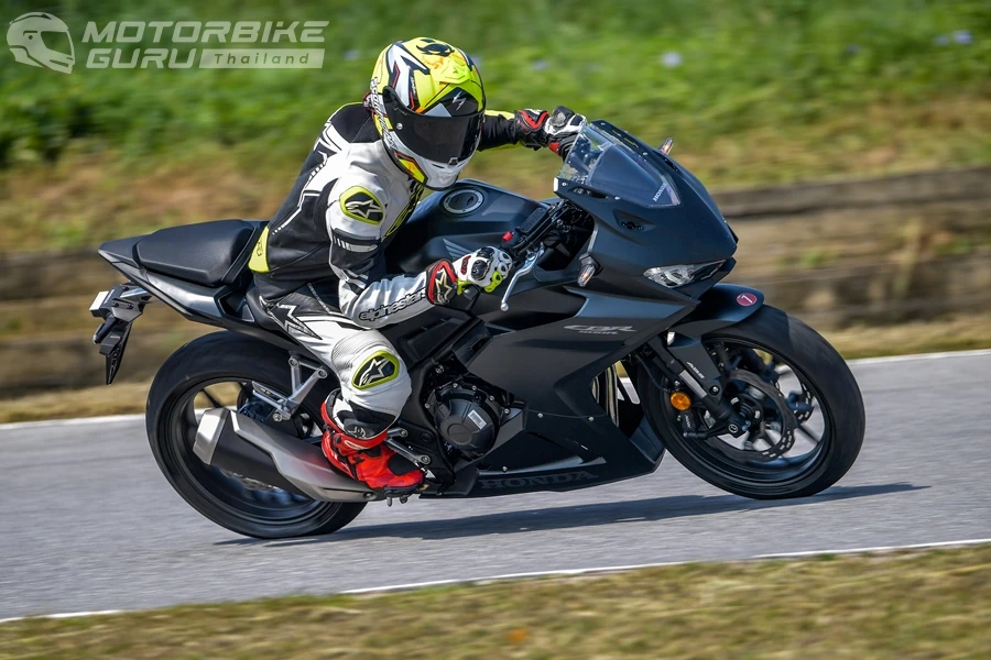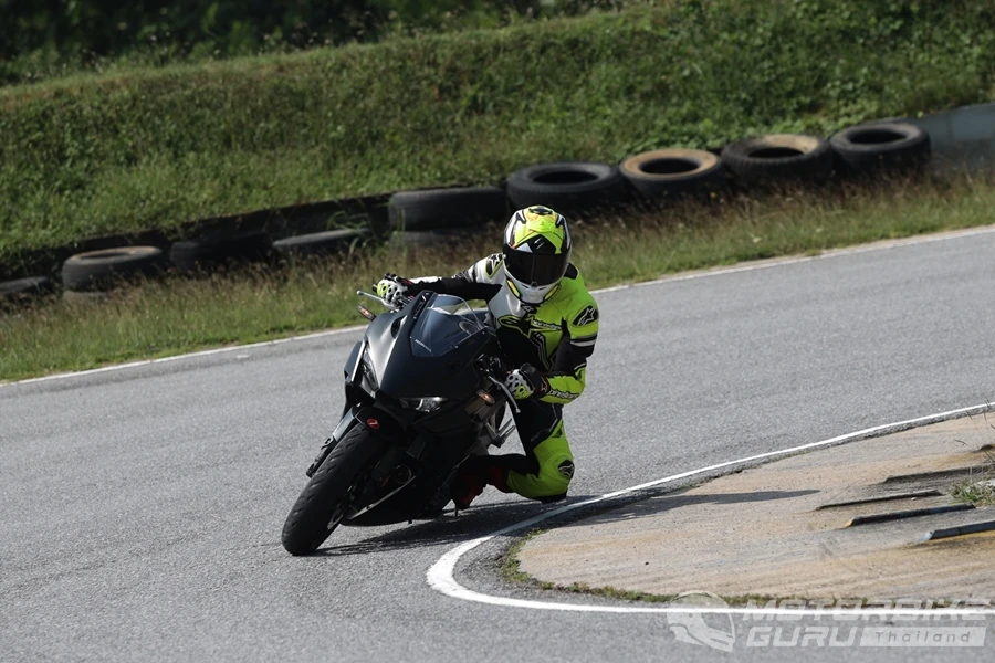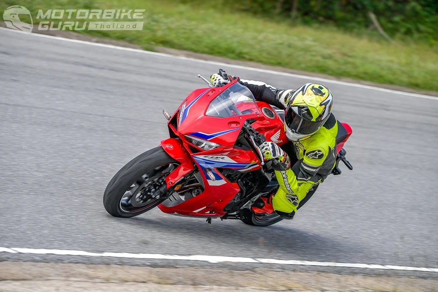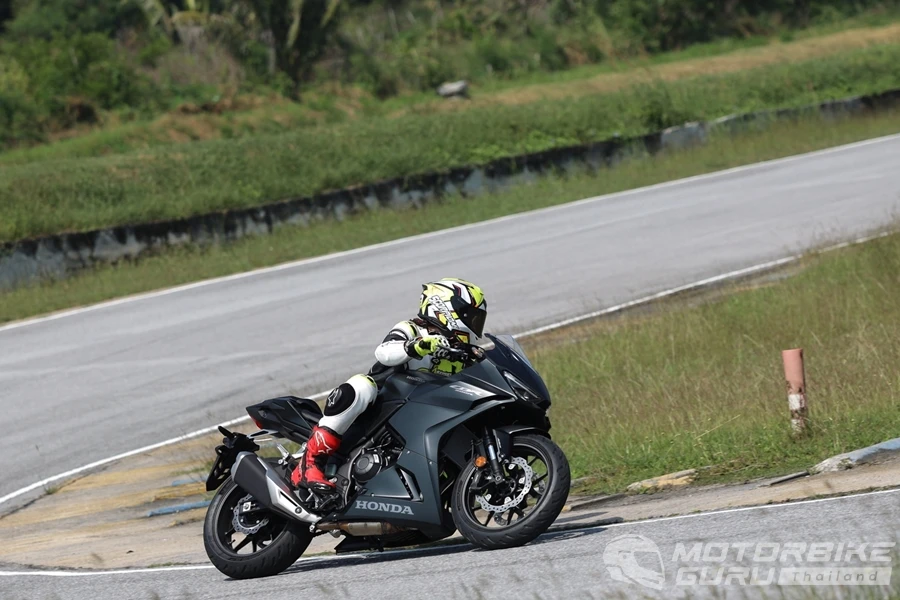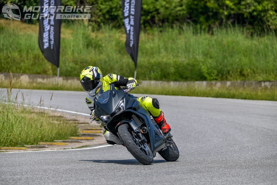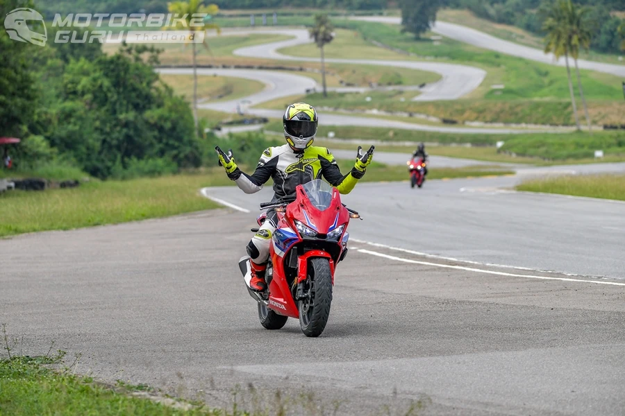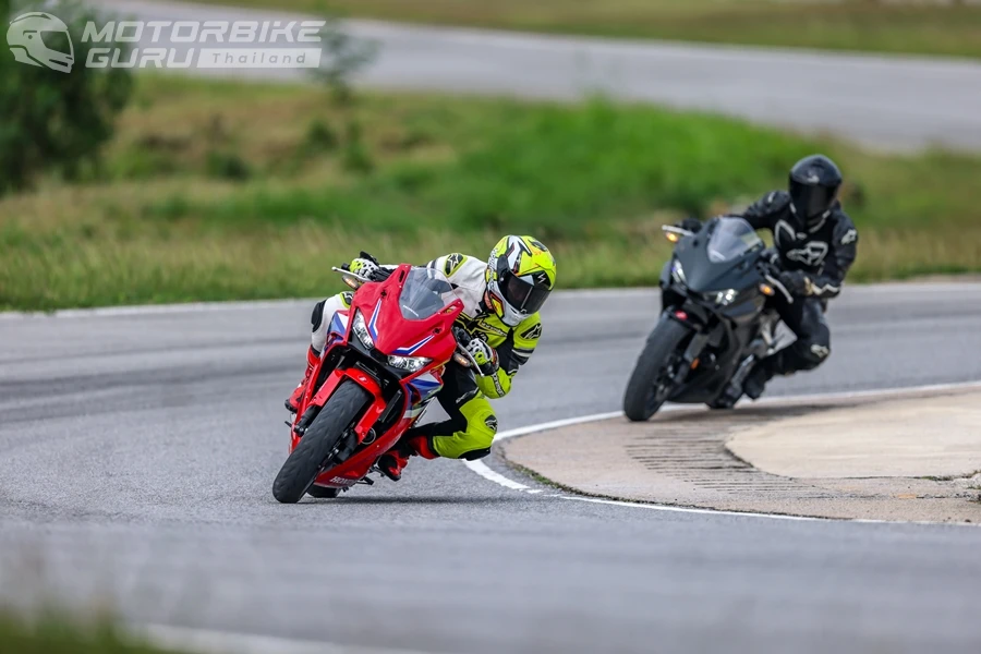 ส่วนการลองขี่ทดสอบในสนามทั้ง 2 รุ่น เริ่มจากเซสชั่นแรกกับรุ่น CBR500R สีดำ ผู้เขียนใช้เวลาไม่กี่รอบก็เริ่มคุ้นชินรถกับเลย์เอ้าท์ของสนามแก่งกระจาน จริงๆ ก็คือ เคยขี่รุ่นนี้มาหลายครั้งทั้งในสนามและถนน รวมทั้งการขี่ในสนามแก่งกระจาน เพียงแต่หาเกียร์ที่ลงตัวในแต่ละโค้งที่ต้องเข้าออก ขับขี่รุ่นนี้ไป 2 เซสชั่น เช้าบ่าย พอสรุปได้ว่าเป็นสปอร์ตบิ๊กไบค์ที่เหมาะกับการขี่บนถนนเปิดโล่งมากกว่าในแทร็ค แต่ก็ไม่ได้หมายความว่าขี่ในสนามแล้วจะไม่สนุก ถ้าคุณกำลังเริ่มต้นการขี่ 500R ช่วยให้คุมพลังได้ง่ายกว่า ตัวรถเบา องศาที่ไม่ต้องลีนมากจนครูดกับพักเท้า และลงทุนเริ่มต้นด้วยงบประมาณที่ไม่สูงมาก จนกว่าจะมั่นใจว่าอยากขยับไปต่อ ส่วนใครที่มีประสบการณ์ขี่ในสนามมาพอสมควร ต้องการบิ๊กไบค์ที่ตอบโจทย์การขี่แบบรถสนามในราคาที่จับต้องได้ก็เทียบกับ 600RR กับ 1000RR ที่ราคาโดดไปแบบจริงจังสุดๆ ก็ต้อง CBR650R เพราะยังไว้ขี่เล่นบนถนนได้ ด้วยขุมพลัง 4 สูบ นั้นให้ความเร้าใจตั้งแต่สตาร์ทเครื่องยนต์ เสมือนการเร่งอะดรีนาลีนในตัวให้พร้อมทะยานไปข้างหน้า การเดินคันเร่ง เบรก เปลี่ยนเกียร์ แตกต่างจาก 500R แบบชัดเจน ส่วนตัวคือ สนุกเร้าใจมากกว่า แต่ก็ต้องแลกมาด้วยสมาธิมากขึ้นเช่นกัน เป็นรุ่นที่ขี่สนามได้เรื่อยๆ ทั้งวันจริงๆ ตำแหน่งท่าขี่ การลีนเข้าโค้ง การควบคุมในโค้ง ชะลอเบาเบรก ล้วนแต่เอื้อให้ไรเดอร์สายซิ่งได้สนุกและคุ้นชินได้ง่ายไปกับตัวรถจริงๆ แค่ได้ลองไมกี่รอบก็จับจังหวะของตัวเองกับสนามได้ไม่ยาก น่าจะเป็นรุ่นที่ลงตัวสำหรับคนรักการขี่ในแทร็คมากกว่า 500R