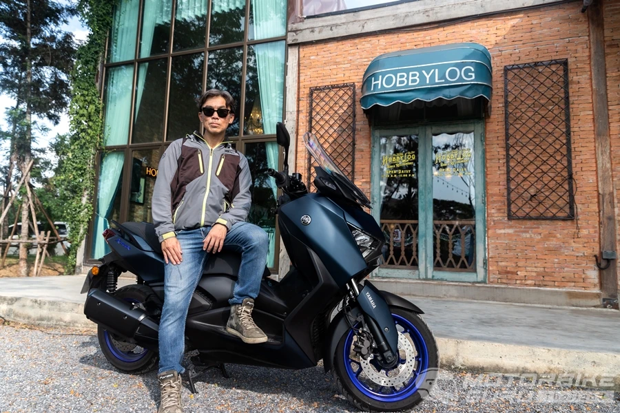 ช่วงบ่าย ๆ ก็มาถึงจุดหมายร้าน Happy Log แก่งคอย สระบุรี ซึ่งเป็นร้านอาหารเครื่องดื่มแนวแคมปิ้งที่เน้นบรรยากาศแบบชิลเอ้าท์ ที่ตั้งลับพอสมควร แต่ก็คุ้มค่าต่อการมานั่งถ้าใครชอบแนวนี้ หลังนั่งพักจิบกาแฟ บันทึกภาพสวย เก็บคลิปเสร็จ ช่วงเย็นก็ออกมาขี่เก็บบรรยากาศทัวร์ริ่งไปตามถนนอดิเรกสารที่ให้ความเป็นถนนสายรองต่างจังหวัดที่สวยสไตล์วิถีชาวบ้านและพื้นถนนดีขี่ง่าย จนได้พระอาทิตย์เริ่มลับฟ้าก็ขี่กลับกรุงเทพฯ จบทริปสไตล์ทัวร์ริ่งด้วยระยะทางรวม 240 กม. ได้อัตราสิ้นปลืองที่ 28.9 กม./ลิตร นับเป็นตัวเลขที่น่าประทับใจไม่น้อย เพราะการขี่ช่วงแรกมีแต่เร่ง เบา เบรก และทางโล่งก็ใช้ความเร็วเต็มที่เท่าที่ทำได้ ไม่มีการปั้นตัวเลขแต่อย่างใด สรุป New Yamaha XMAX Connected สามารถตอบโจทย์การขี่ทางไกลท่องเที่ยวสไตล์ทัวร์ริ่งได้เป็นอย่างดี ใครที่สนใจสกู๊ตเตอร์แบบครบเครื่องจบครบในคันเดียว ทั้งขี่ไปทำงาน เรียน และท่องเที่ยว